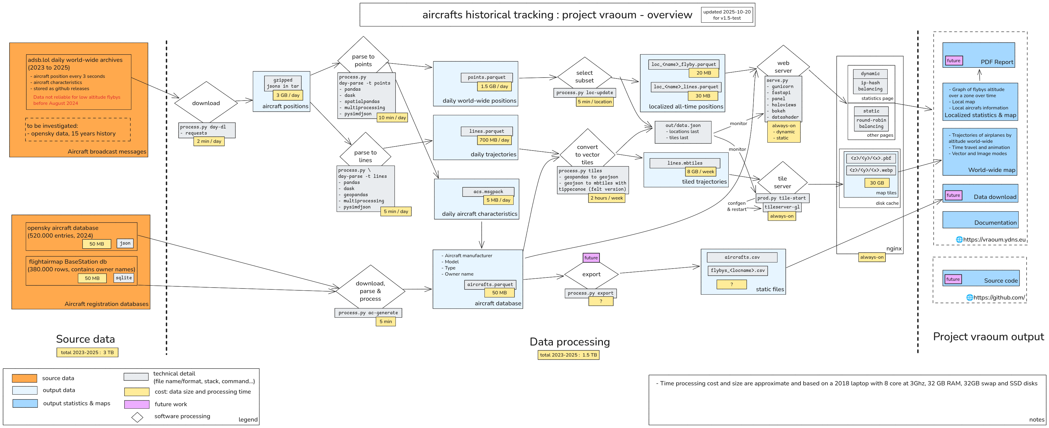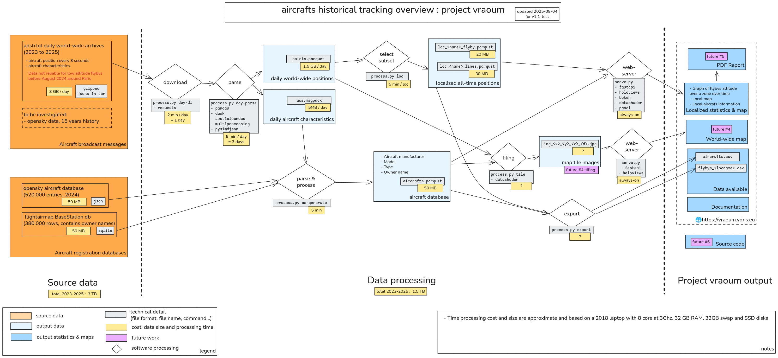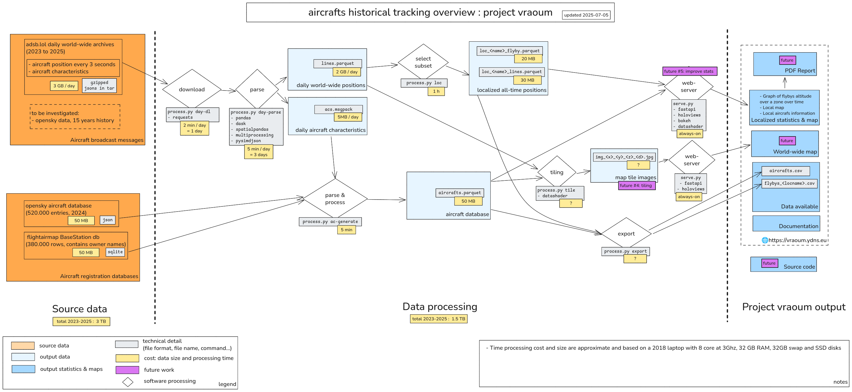 The vraoum project is based on multiple data sources for aircraft location and categorisation, as well as open-source tools for processing this data.
