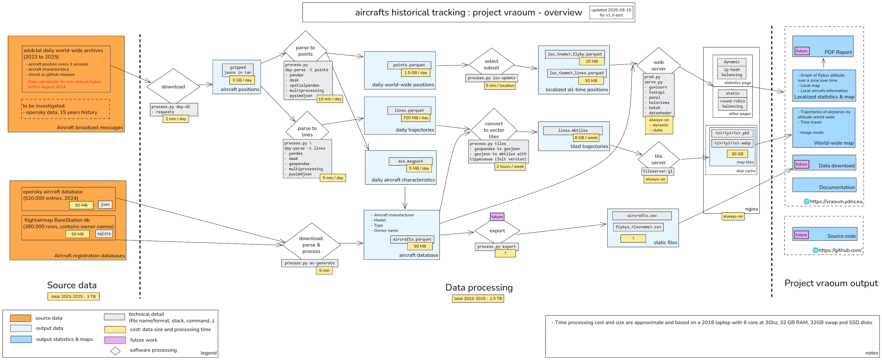 The schematic bellow summarizes the different sources and output of the vroum project: